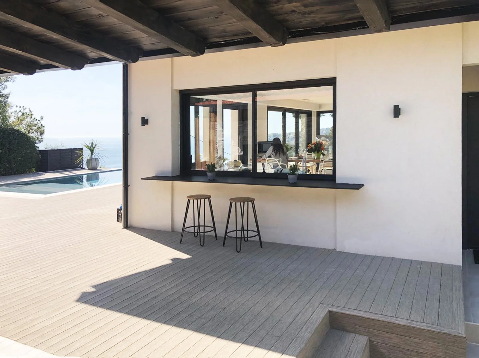 L'intervention s'articule autour d'une refonte complète des aménagements intérieurs afin d'optimiser les volumes et d'apporter une fluidité spatiale globale. Ce travail est complété par la création d'une spectaculaire piscine miroir face à la mer et la requalification des terrasses, assurant une continuité fluide entre les différentes zones de vie. Parallèlement, le ravalement des façades, utilisant des matériaux sobres, affirme une nouvelle écriture extérieure, élégante et discrète.