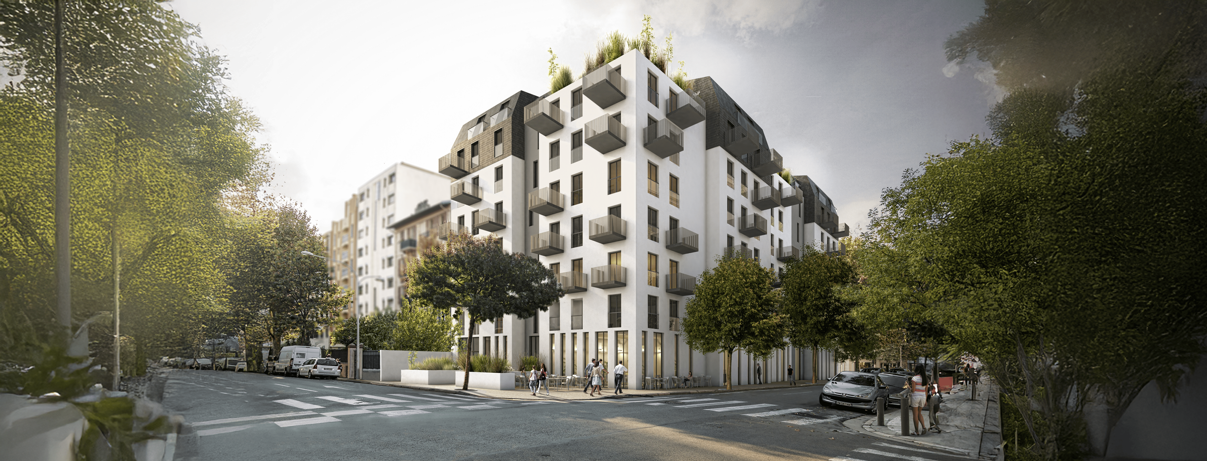 Le projet porte sur la création d’un immeuble mixte, combinant des logements et des commerces en rez-de-chaussée. L’objectif est de réinterpréter le paysage urbain existant tout en s’intégrant harmonieusement au bâtiment historique voisin.